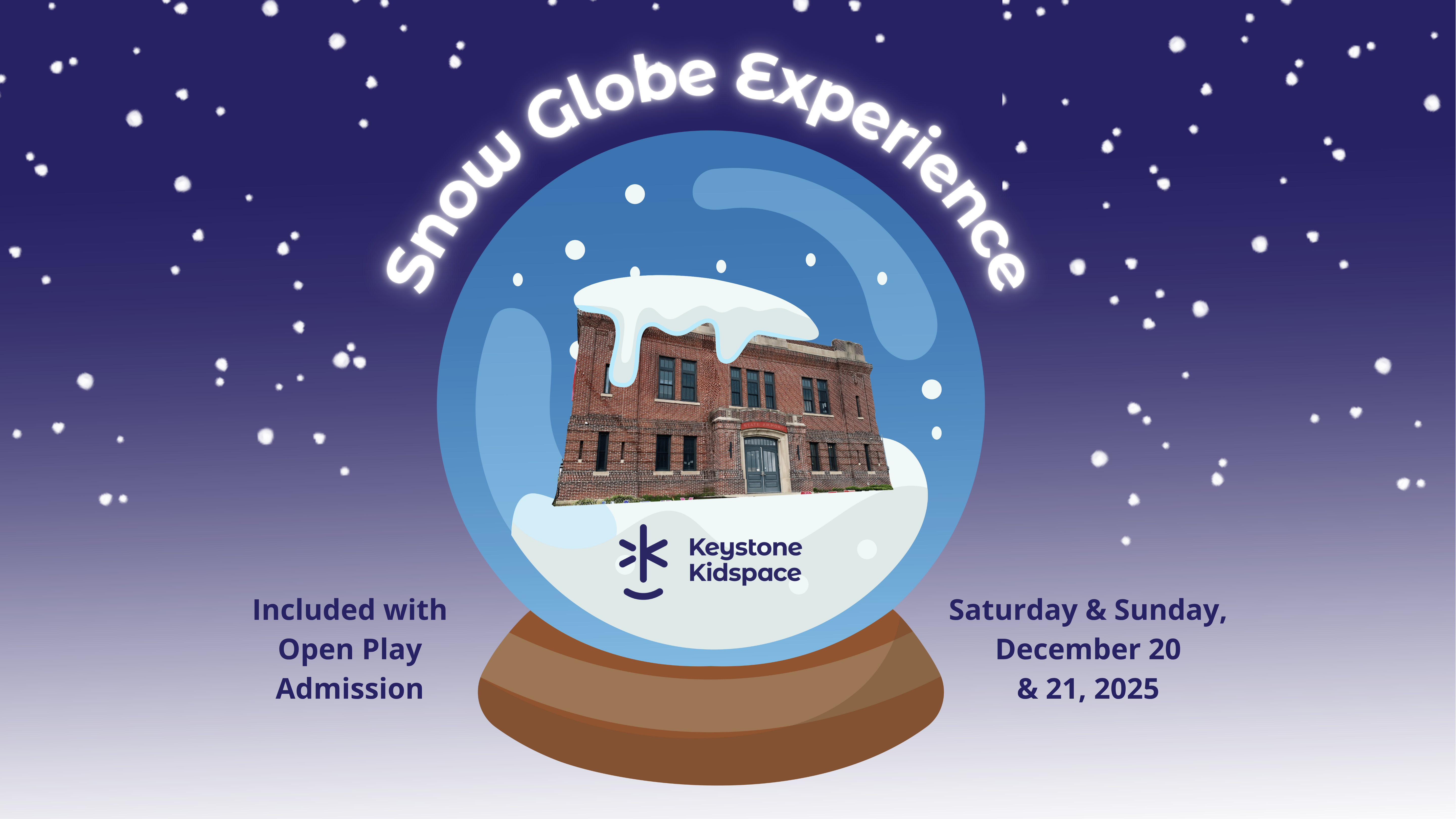 We're turning Keystone Kidspace into a Snow Globe! Grab a cup of warm cocoa and stroll through our inflatable-filled Winter WonderBar. Snow Globe Experience is included with Open Play admission.